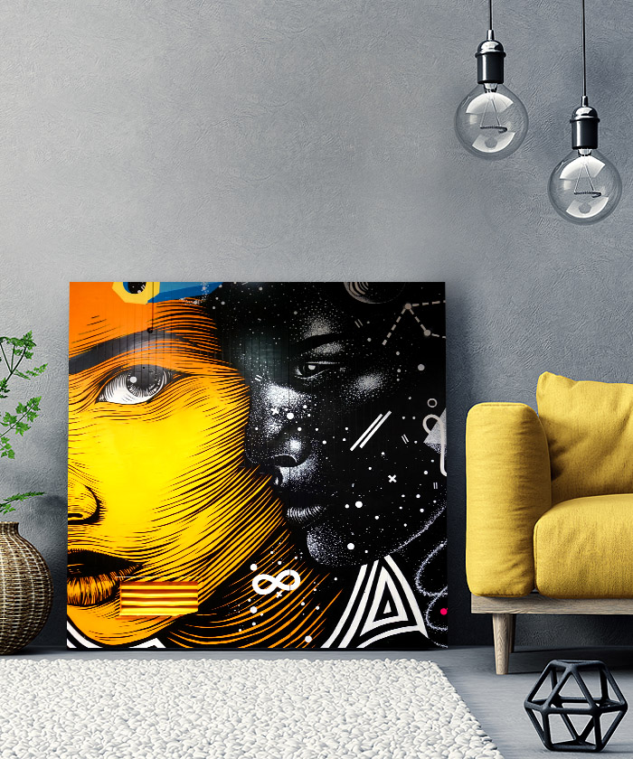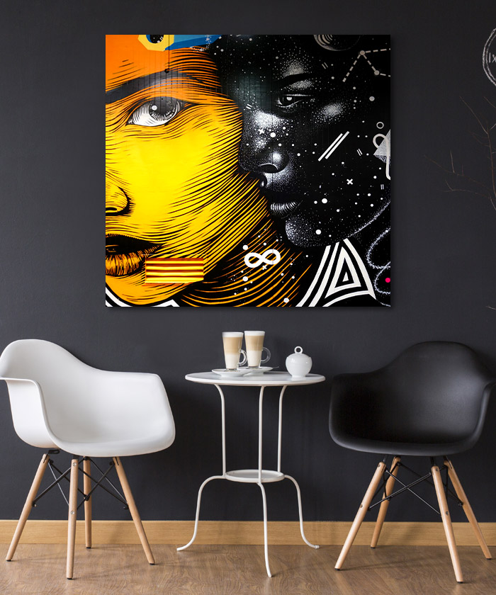 Chez Tableau Déco, nous réalisons tous les visuels de nos tableaux décoratifs. Notre métier, c’est aussi la création artistique. Ainsi, vous ne retrouverez nos tableaux nulle part ailleurs. Nous fabriquons ce tableau déco 2 portraits street art en France, dans notre atelier de région parisienne.