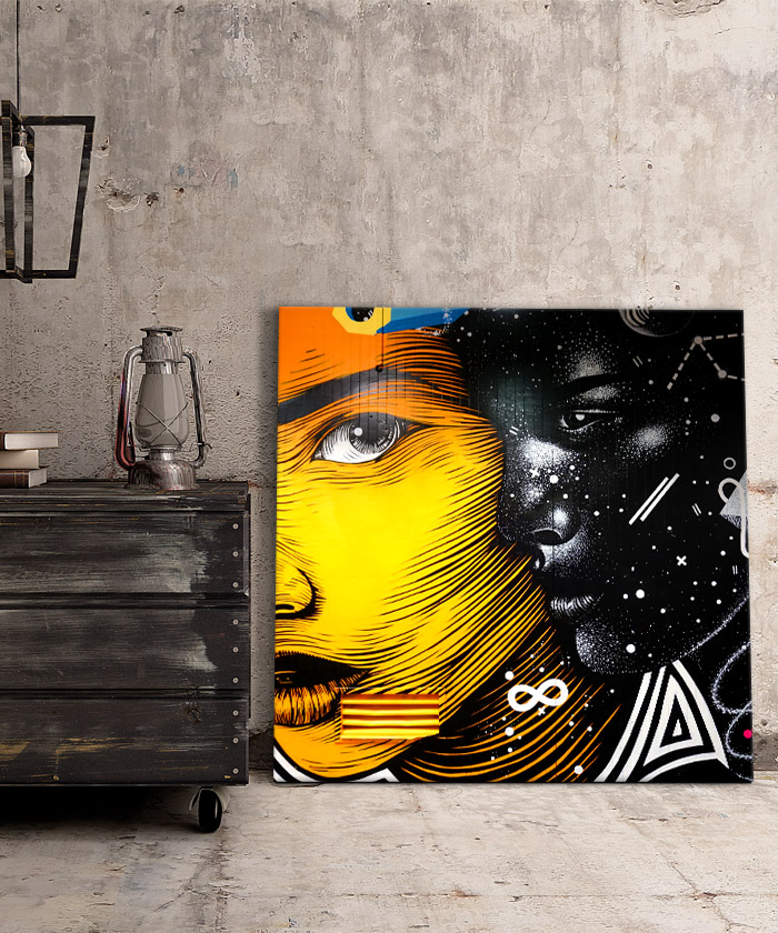 Nous vous présentons le tableau déco 2 portraits street art. Si vous aimez l’art urbain, vous devriez aimer ce tableau déco de femmes autant que nous. En vous proposant ce tableau décoratif, nous souhaitons apporter un zeste d’originalité à votre intérieur. Cette toile propose une touche à la fois ethnique et moderne.