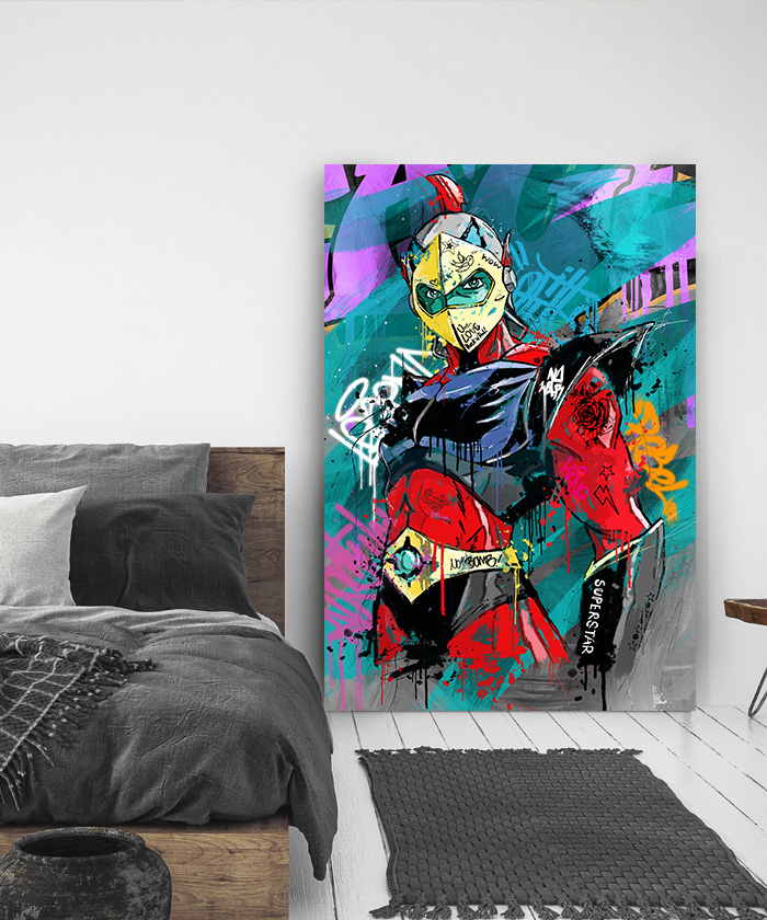 Nous vous présentons le tableau déco Actarus graffiti street art. Si vous aimez ce super-héros, vous devriez aimer ce tableau déco d’Actarus Goldorak autant que nous. En vous proposant ce tableau décoratif, nous souhaitons apporter un zeste d’originalité à votre intérieur. Cette toile propose une touche à la fois urbaine et moderne.