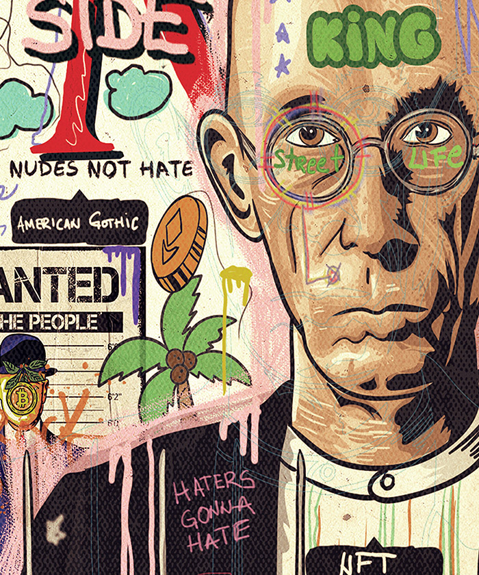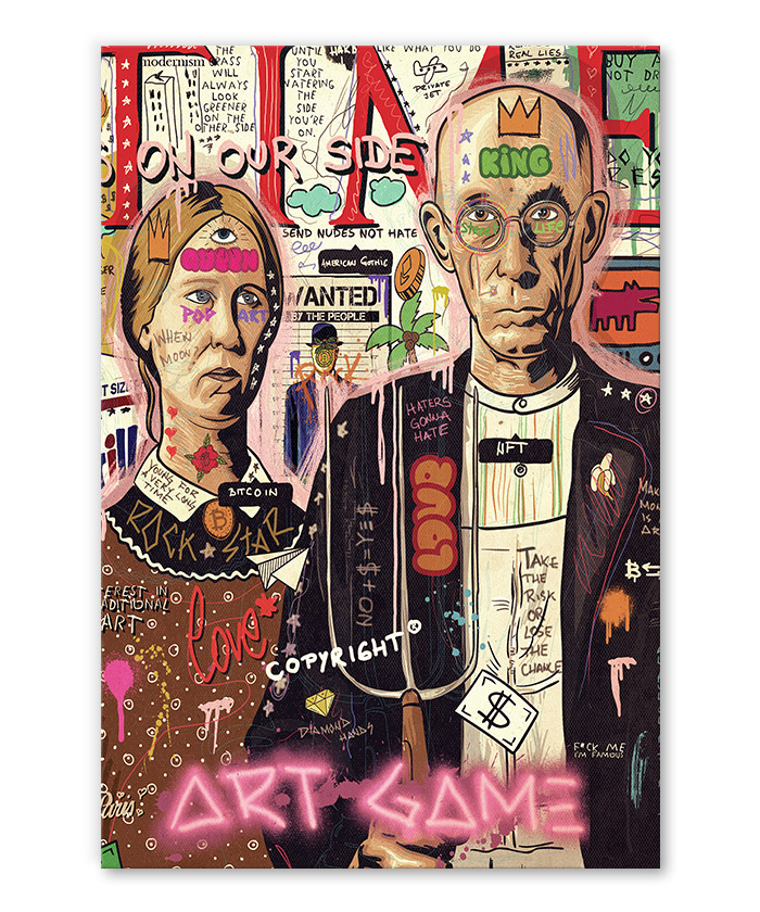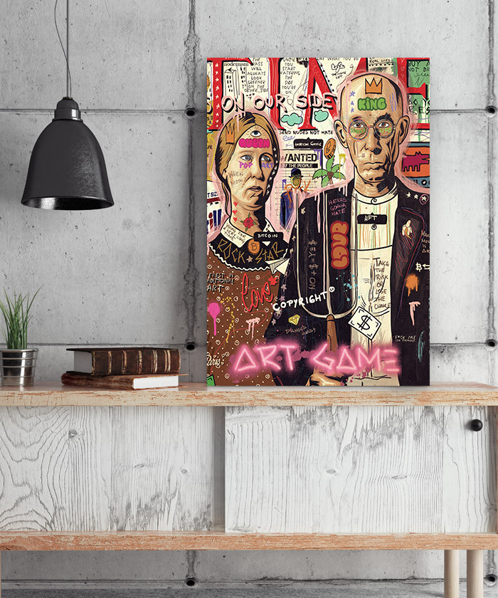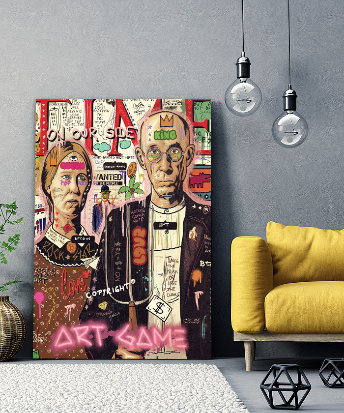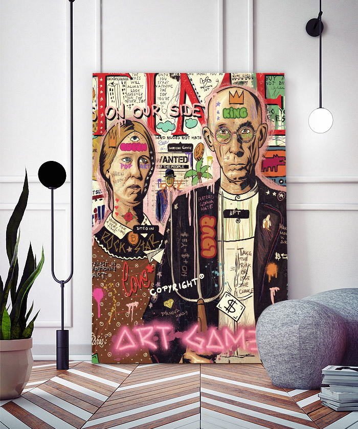Nous vous présentons le tableau déco American Gothic Grant Wood Comics Pop Artt. Si vous aimez l’art urbain, vous devriez aimer ce tableau déco s’inspirant de l’oeuvre de Grant Wood autant que nous. En vous proposant ce tableau décoratif, nous souhaitons apporter un zeste d’originalité à votre intérieur. Cette toile propose une touche à la fois urbaine et moderne.