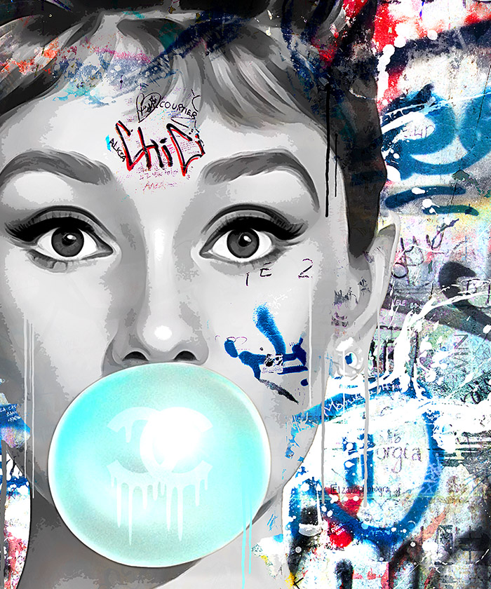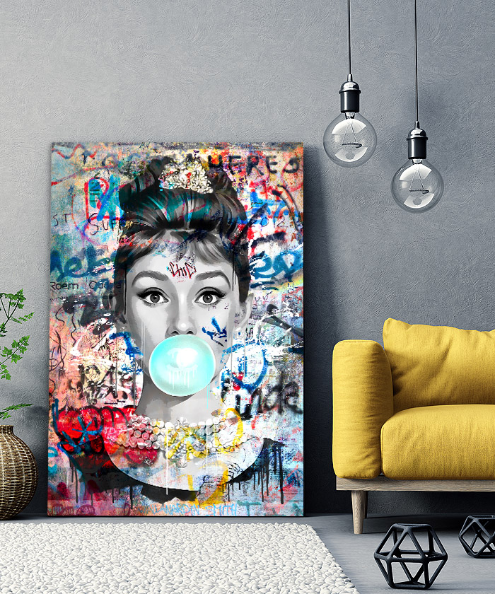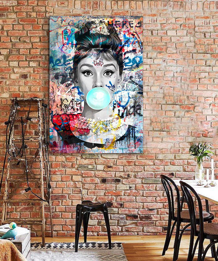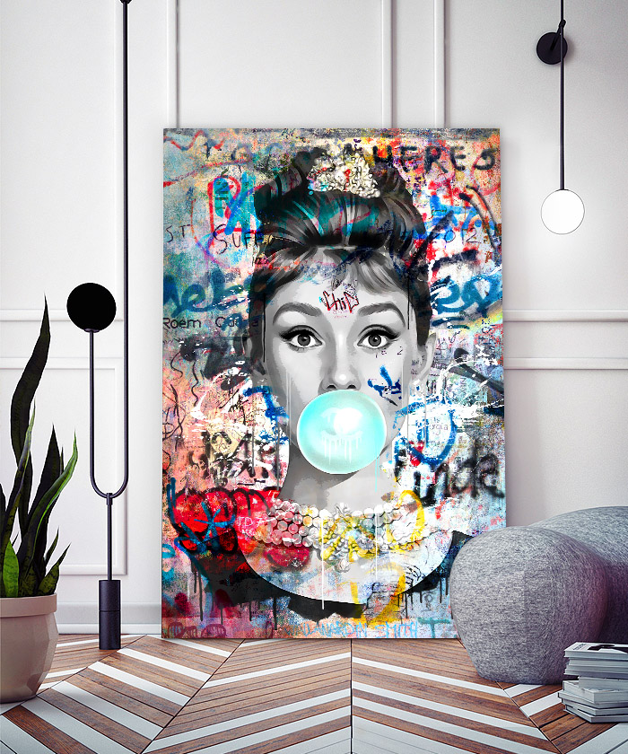 Tableau déco Audrey Hepburn Chewing-gum Street Art