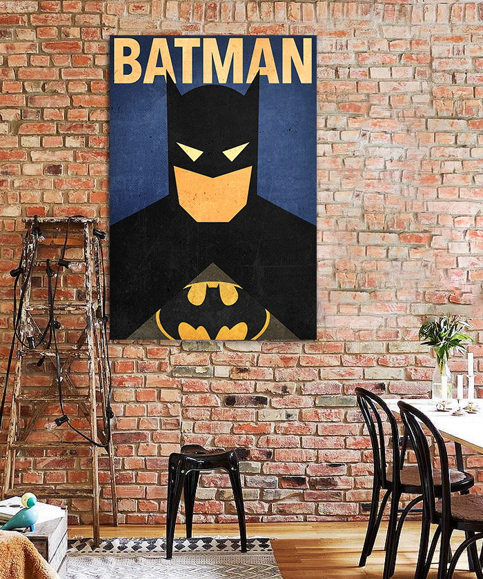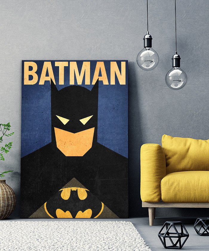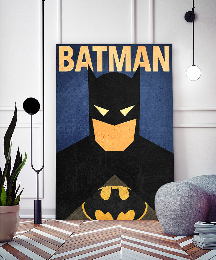 Nous vous présentons le tableau déco Batman minimaliste. Si vous aimez ce super-héros, vous devriez aimer ce tableau déco de Batman autant que nous. En vous proposant ce tableau décoratif, nous souhaitons apporter un zeste d’originalité à votre intérieur. Cette toile propose une touche à la fois minimaliste et vintage.
