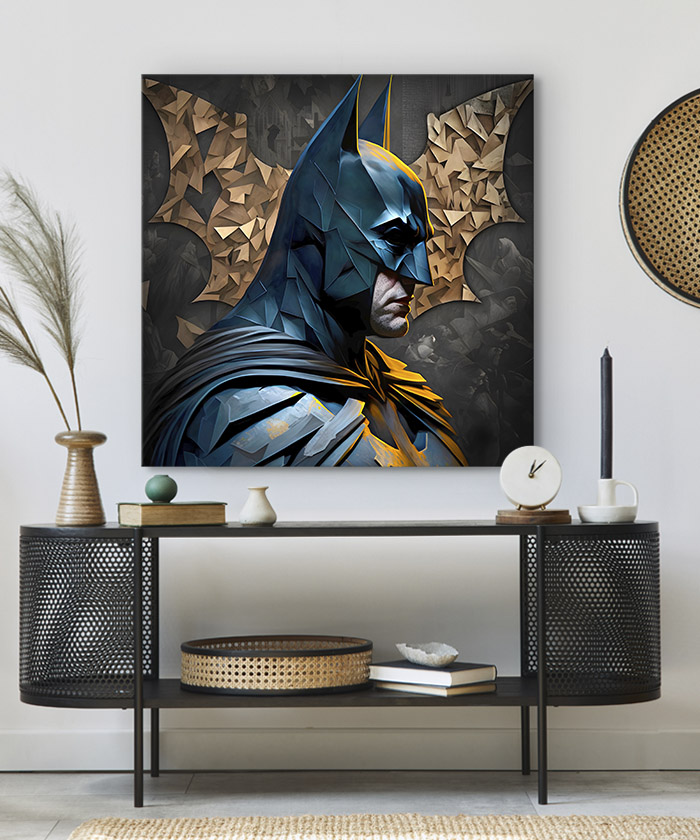 Nous vous présentons le tableau déco Batman super héros Dc Comics Polygonal. Si vous aimez l’art urbain, vous devriez aimer ce tableau déco de Batman autant que nous. En vous proposant ce tableau décoratif, nous souhaitons apporter un zeste d’originalité à votre intérieur. Cette toile propose une touche à la fois graphique et design.