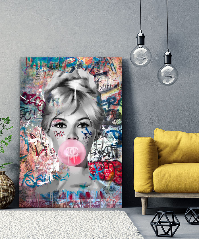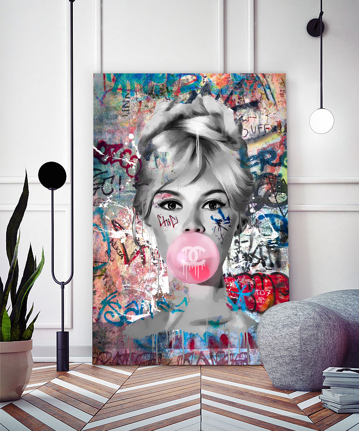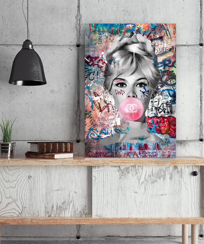 Nous vous présentons le tableau déco Brigitte Bardot Chewing-gum Street Art. Si vous aimez cette célébrité, vous devriez aimer ce tableau déco de Brigitte Bardot autant que nous. En vous proposant ce tableau décoratif, nous souhaitons apporter un zeste d’originalité à votre intérieur. Cette toile propose une touche à la fois street-art et moderne.