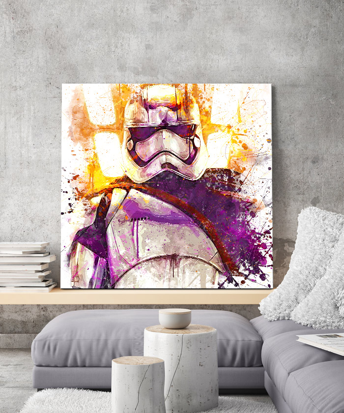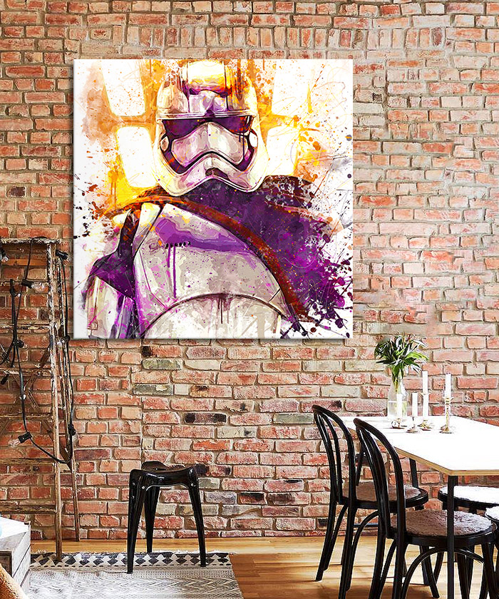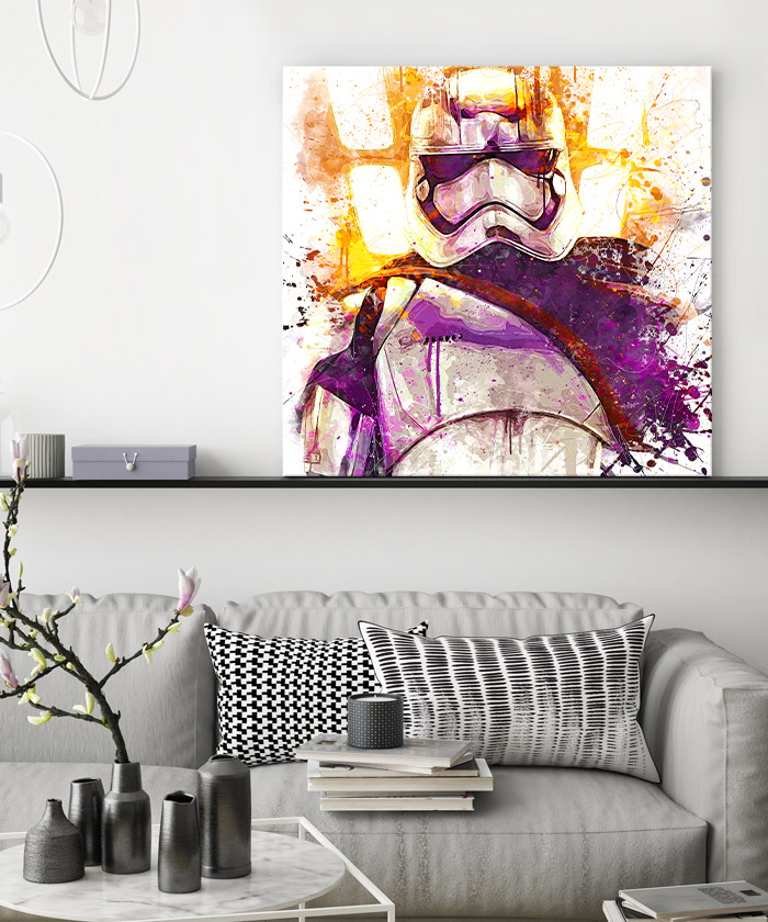 Chez Tableau Déco, nous réalisons tous les visuels de nos tableaux décoratifs. Notre métier, c’est aussi la création artistique. Ainsi, vous ne retrouverez nos tableaux nulle part ailleurs. Nous fabriquons ce tableau déco Capitaine Phasma Star Wars Stormtrooper pop art en France, dans notre atelier de région parisienne.