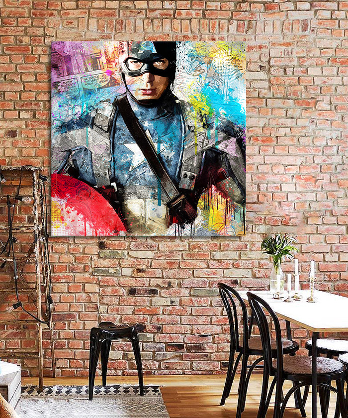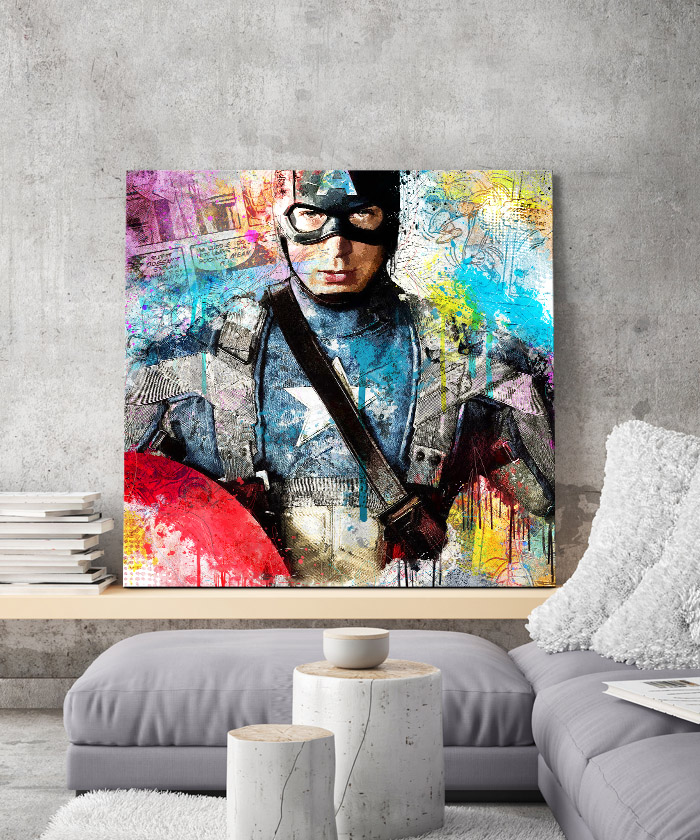 Nous vous présentons le tableau déco Captain America bande dessinée comics Marvel. Si vous aimez ce super-héros, vous devriez aimer ce tableau déco de Captain America autant que nous. En vous proposant ce tableau décoratif, nous souhaitons apporter un zeste d’originalité à votre intérieur. Cette toile propose une touche à la fois moderne et pop.