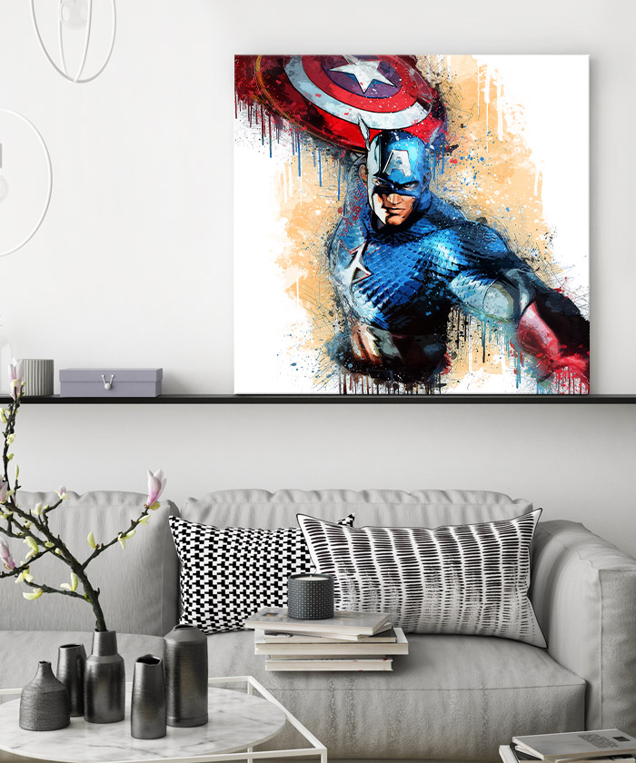 Nous vous présentons le tableau déco Captain America Comics original Marvel. Si vous aimez ce super-héros, vous devriez aimer ce tableau déco de Captain America autant que nous. En vous proposant ce tableau décoratif, nous souhaitons apporter un zeste d’originalité à votre intérieur. Cette toile propose une touche à la fois moderne et design.