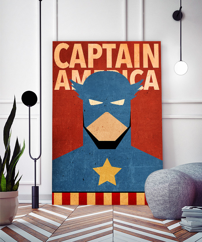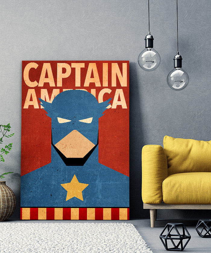Nous vous présentons le tableau déco Captain America minimaliste. Si vous aimez ce super-héros, vous devriez aimer ce tableau déco de Captain America autant que nous. En vous proposant ce tableau décoratif, nous souhaitons apporter un zeste d’originalité à votre intérieur. Cette toile propose une touche à la fois minimaliste et vintage.
