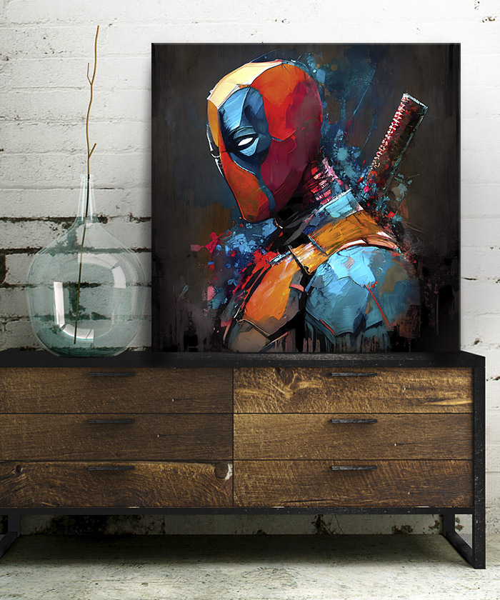 Nous vous présentons le tableau déco Captain Deadpool peinture Marvel Pop Art. Si vous aimez ce super-héros, vous devriez aimer ce tableau déco de Deadpool autant que nous. En vous proposant ce tableau décoratif, nous souhaitons apporter un zeste d’originalité à votre intérieur. Cette toile propose une touche à la fois moderne et design.