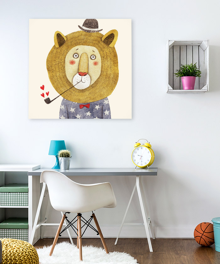 Chez Tableau Déco, nous réalisons tous les visuels de nos tableaux décoratifs. Notre métier, c’est aussi la création artistique. Ainsi, vous ne retrouverez nos tableaux nulle part ailleurs. Nous fabriquons ce tableau déco lion enfant en France, dans notre atelier de région parisienne.