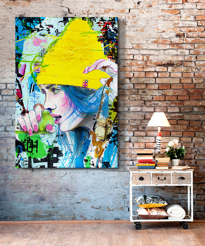 Nous vous présentons le tableau déco Billie Eilish Street Art. Si vous aimez cette célébrité, vous devriez aimer ce tableau déco de Billie Eilish autant que nous. En vous proposant ce tableau décoratif, nous souhaitons apporter un zeste d’originalité à votre intérieur. Cette toile propose une touche à la fois colorée et urbaine.