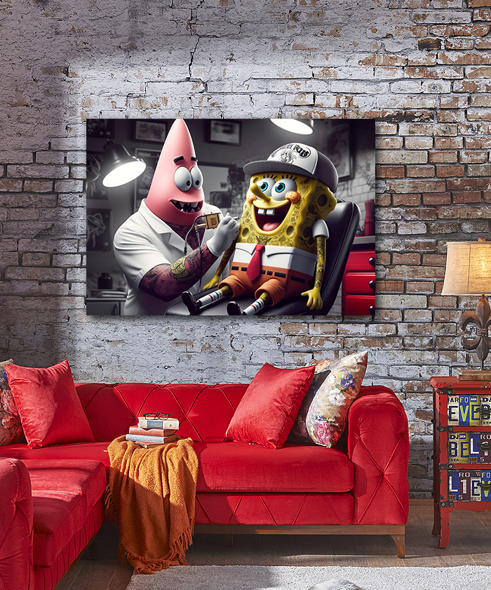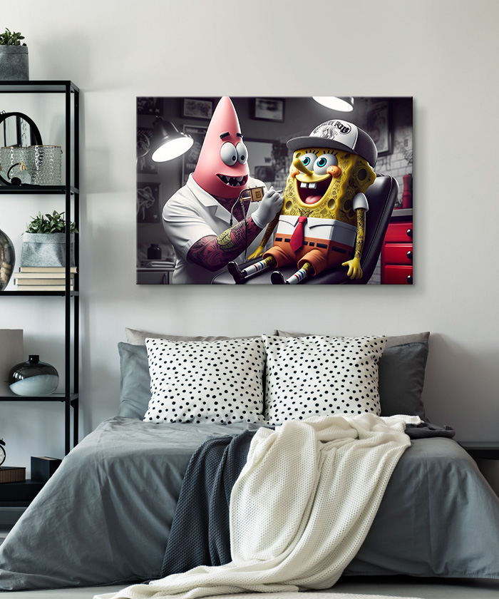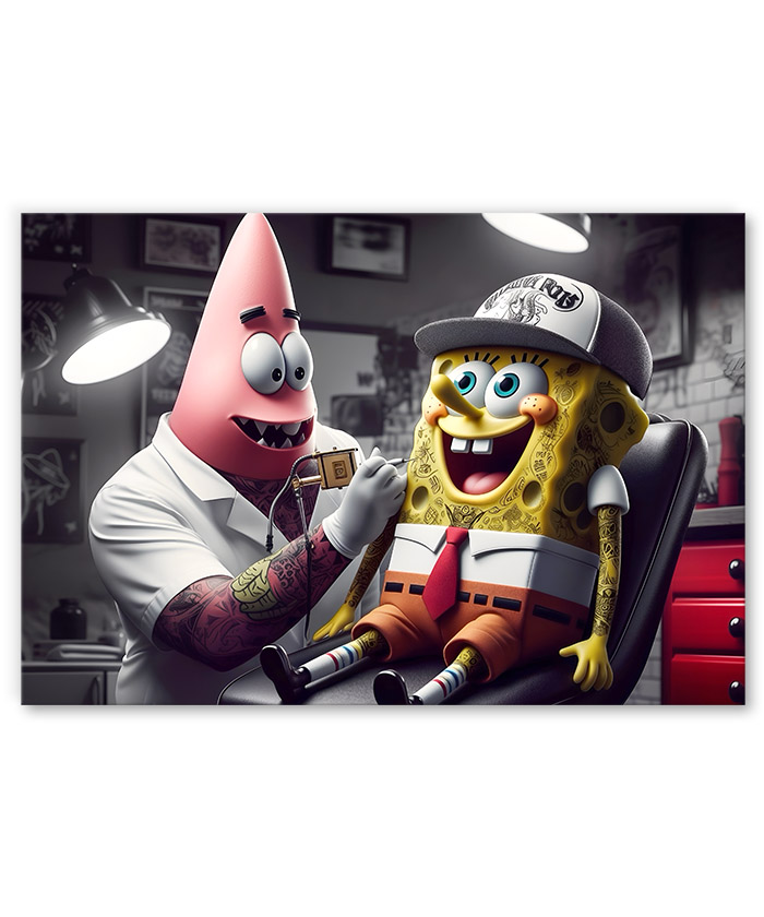 Tableau déco Bob l’éponge et Patrick l’étoile de mer tatouage