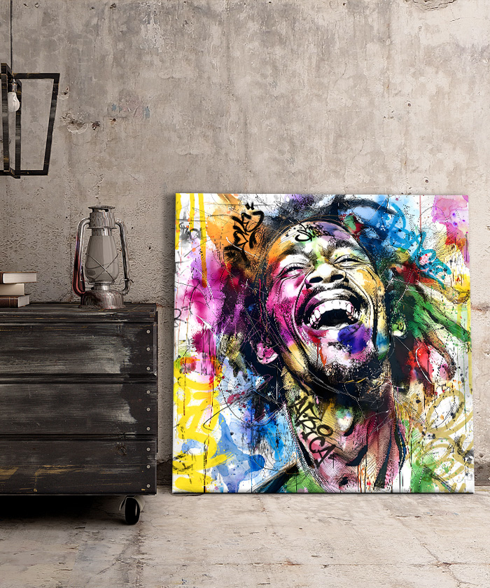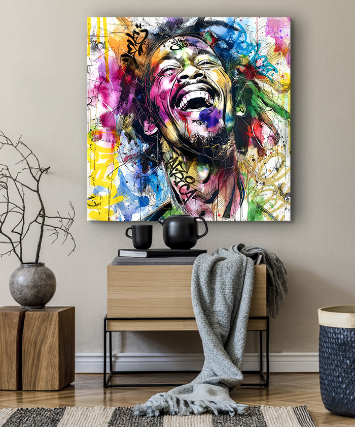 Nous vous présentons le tableau déco Bob Marley Aquarelle Pop-art Street-art. Si vous aimez ce super-héros, vous devriez aimer ce tableau déco de Pop-art autant que nous. En vous proposant ce tableau décoratif, nous souhaitons apporter un zeste d’originalité à votre intérieur. Cette toile propose une touche à la fois moderne et design.