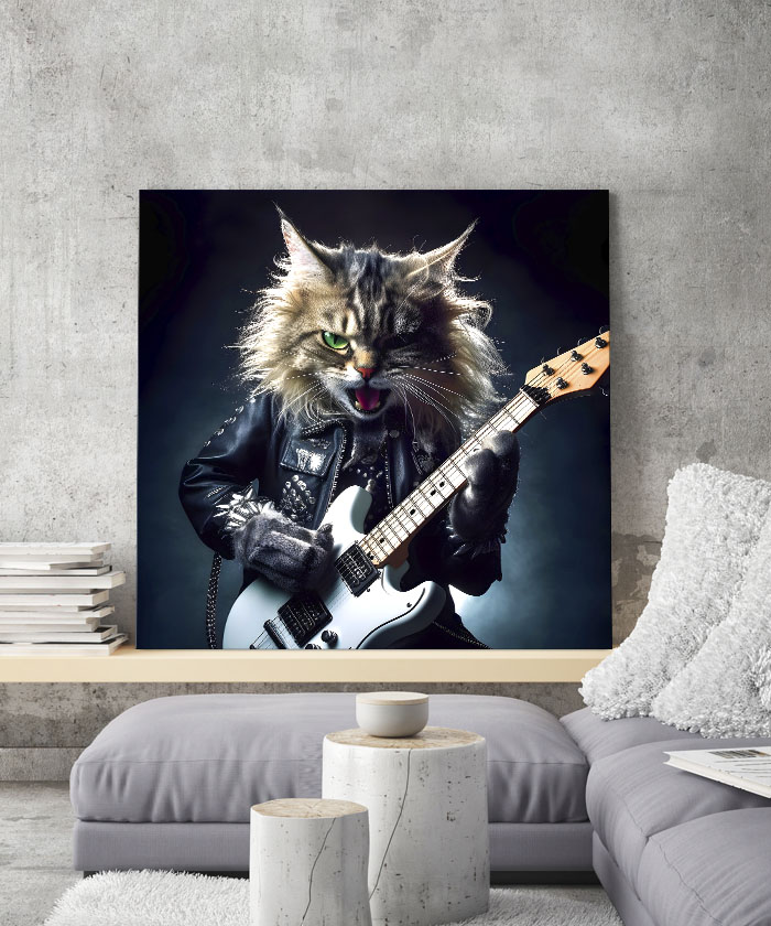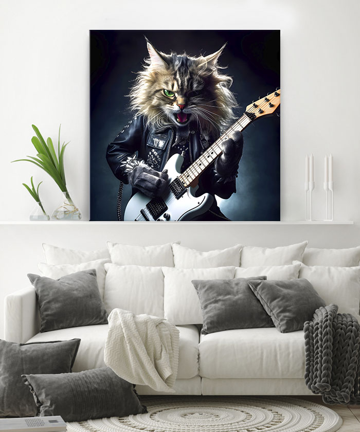 Nous vous présentons le tableau déco Chat Rockeur Musicien pop art. Si vous faites partie de ceux qui sont fans de cet animal, vous devriez aimer ce tableau déco de chat autant que nous. En vous proposant ce tableau décoratif, nous souhaitons apporter un zeste d’originalité à votre intérieur. Cette toile propose une touche à la fois moderne et pop-art.