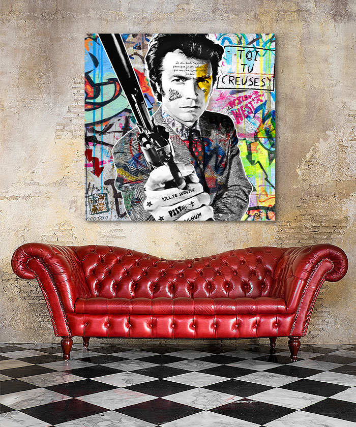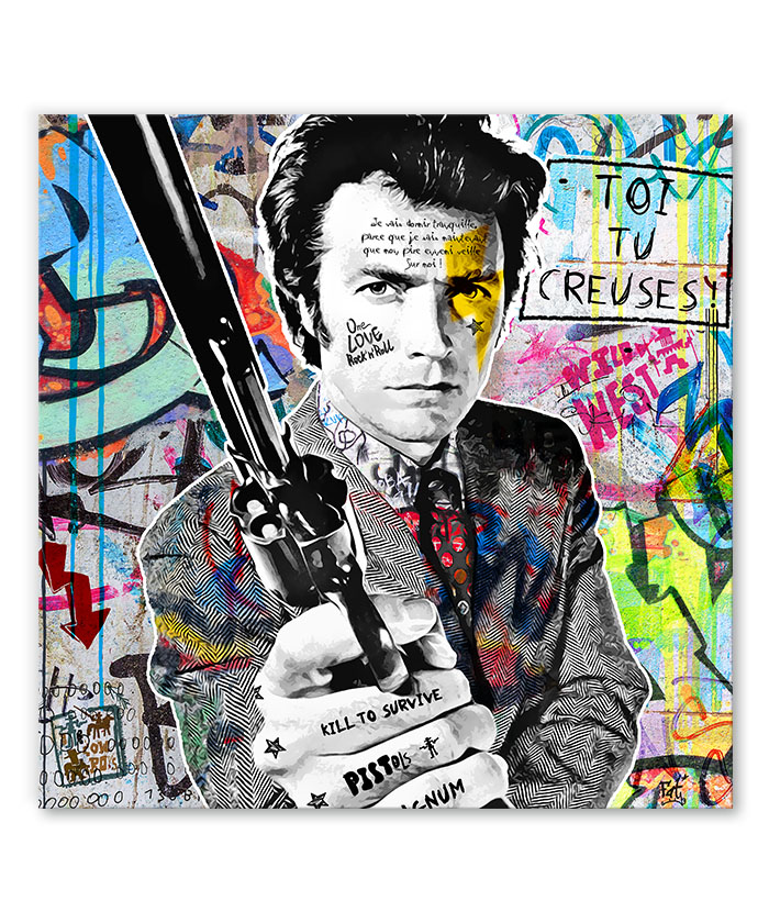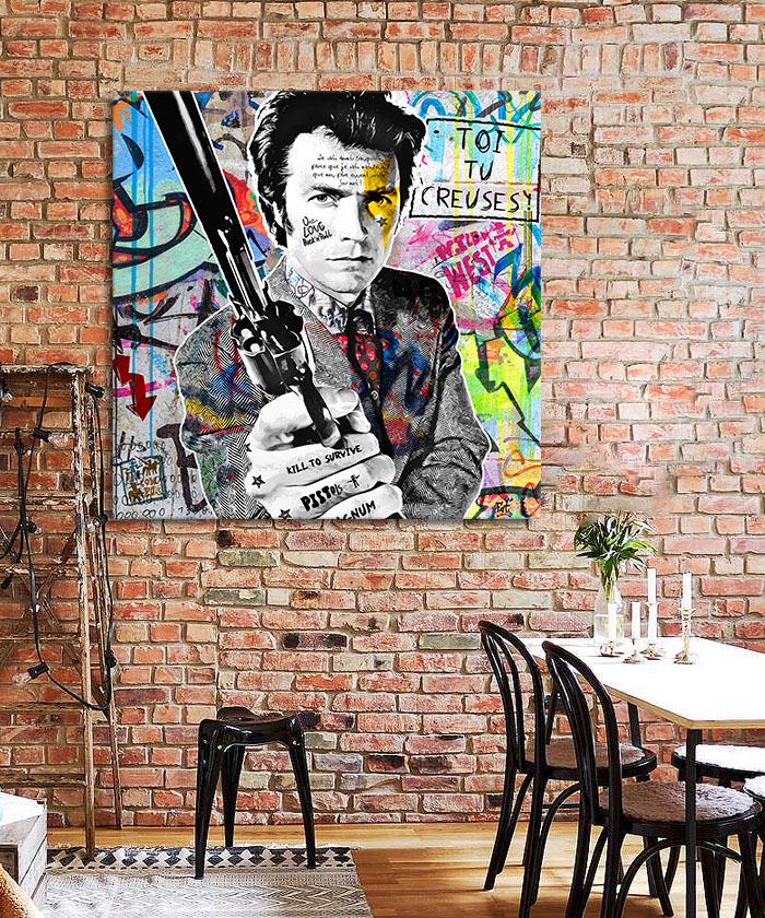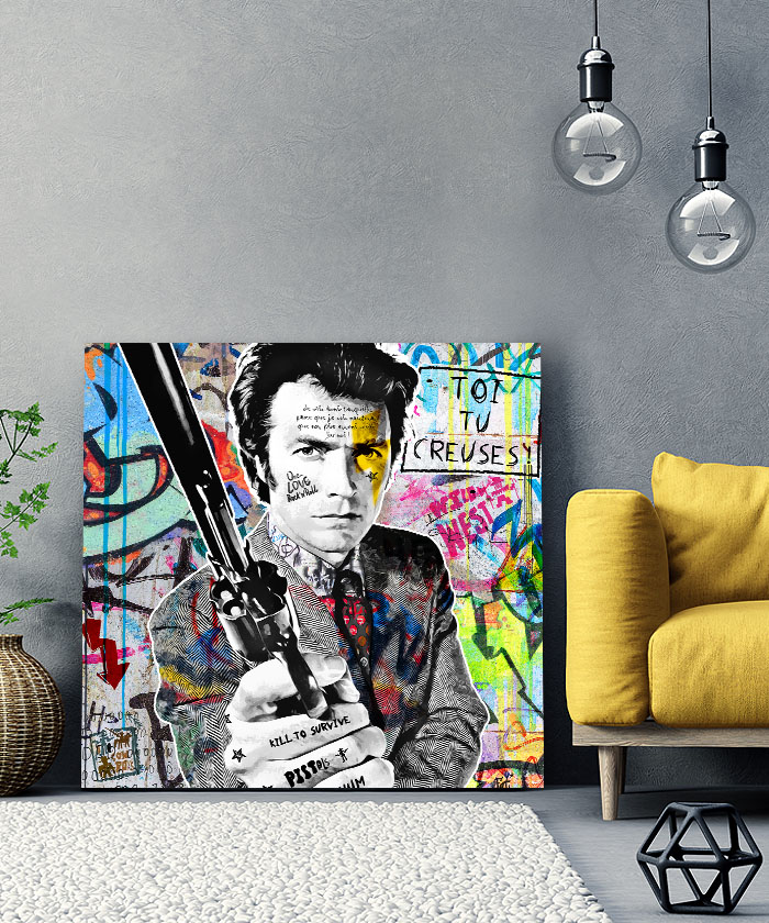 Nous vous présentons le tableau déco Clint Eastwood Street Art – Fat. Si vous aimez cette célébrité, vous devriez aimer ce tableau déco de Clint Eastwood autant que nous. En vous proposant ce tableau décoratif, nous souhaitons apporter un zeste d’originalité à votre intérieur. Cette toile propose une touche à la fois street-art et moderne.