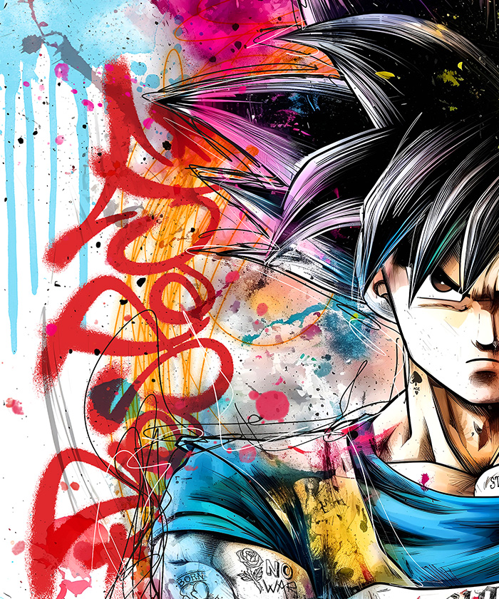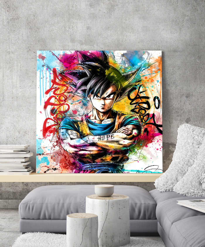 Tableau déco Dragon Ball Son Goku aquarelle pop art