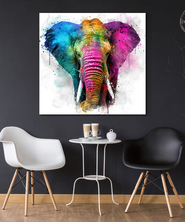 Nous vous présentons le tableau déco Eléphant Pop Art Peinture. Si vous faites partie de ceux qui sont fans de cet animal, vous devriez aimer ce tableau déco d’éléphant autant que nous. En vous proposant ce tableau décoratif, nous souhaitons apporter un zeste d’originalité à votre intérieur. Cette toile propose une touche à la fois colorée et pop-art.