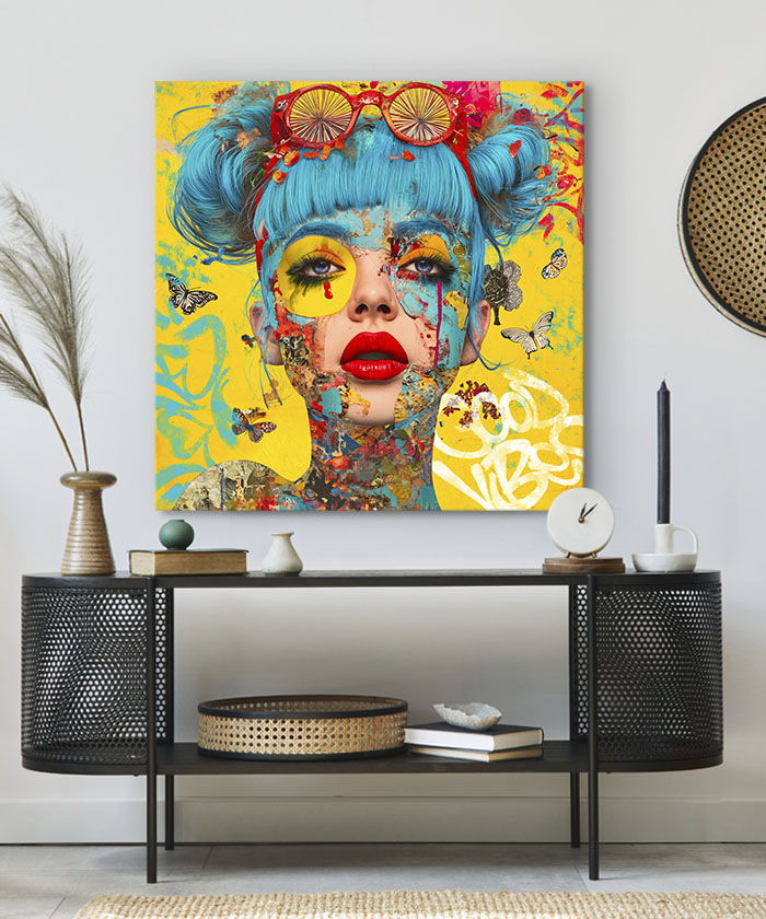 Nous vous présentons le tableau déco femme colorée design pop art. Si vous aimez la décoration pop-art, vous devriez aimer ce tableau déco de femme pop art autant que nous. En vous proposant ce tableau décoratif, nous souhaitons apporter un zeste d’originalité à votre intérieur. Cette toile propose une touche à la fois contemporaine et colorée.
