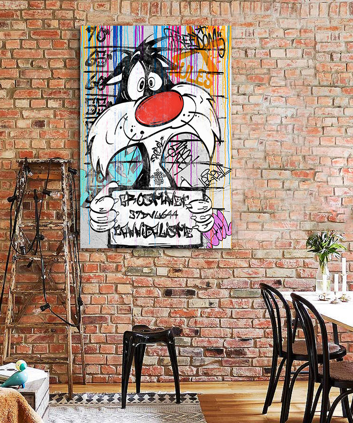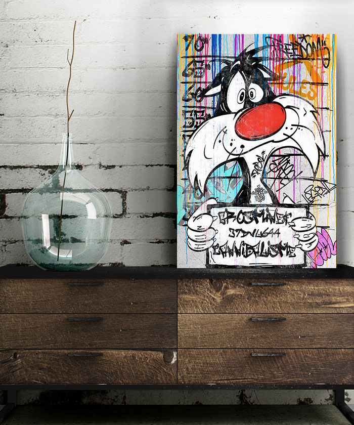 Nous vous présentons le tableau déco Grosminet Cartoon Tex Avery Street art. Si vous aimez le monde des cartoon, vous devriez aimer ce tableau déco de Grosminet autant que nous. En vous proposant ce tableau décoratif, nous souhaitons apporter un zeste d’originalité à votre intérieur. Cette toile propose une touche à la fois street-art et colorée.
