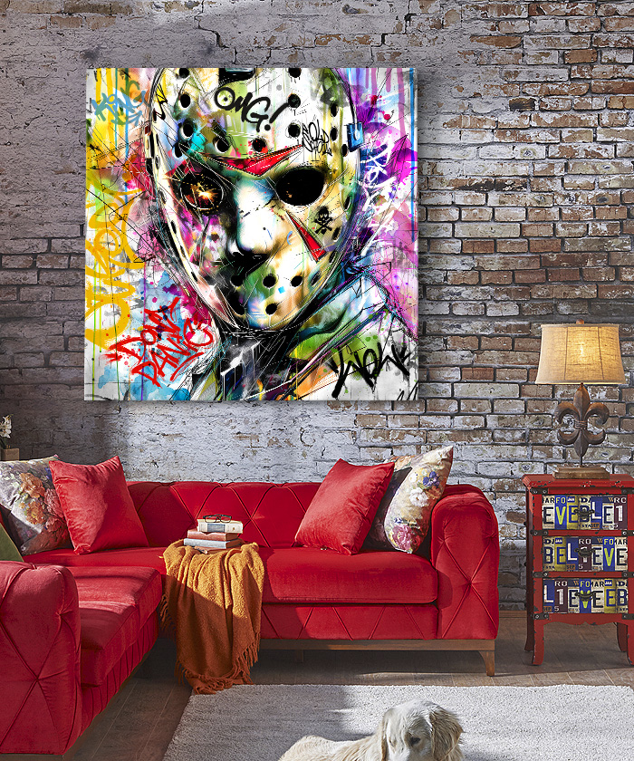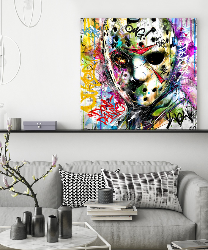 Nous vous présentons ce Tableau déco Jason Vendredi 13 Aquarelle Street-art. Si vous aimez ce super-héros, vous devriez aimer ce tableau déco des années 80 revisité autant que nous. En vous proposant ce tableau décoratif, nous souhaitons apporter un zeste d’originalité à votre intérieur. Cette toile propose une touche à la fois artistique et élégante.