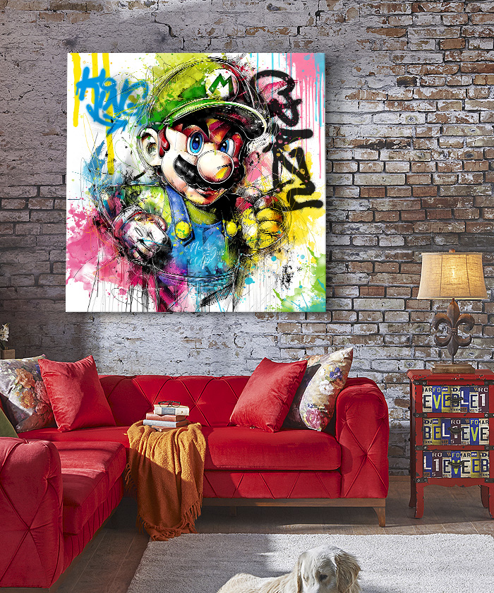 Chez Tableau Déco, nous réalisons tous les visuels de nos tableaux décoratifs. Notre métier, c’est aussi la création artistique. Ainsi, vous ne retrouverez nos tableaux nulle part ailleurs. Nous fabriquons ce tableau déco Mario Bros Nintendo pop art aquarelle graffiti en France, dans notre atelier de région parisienne.