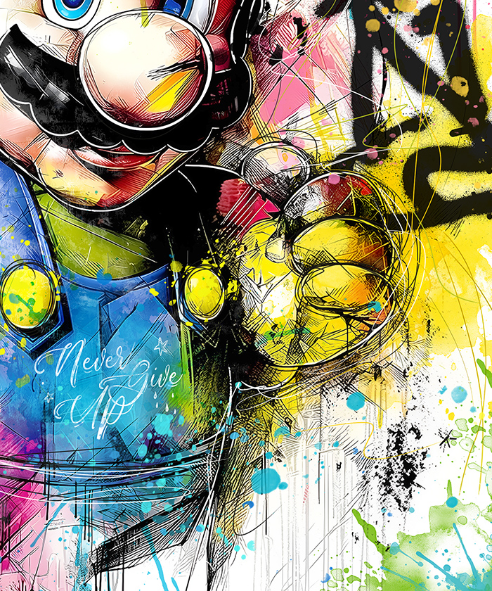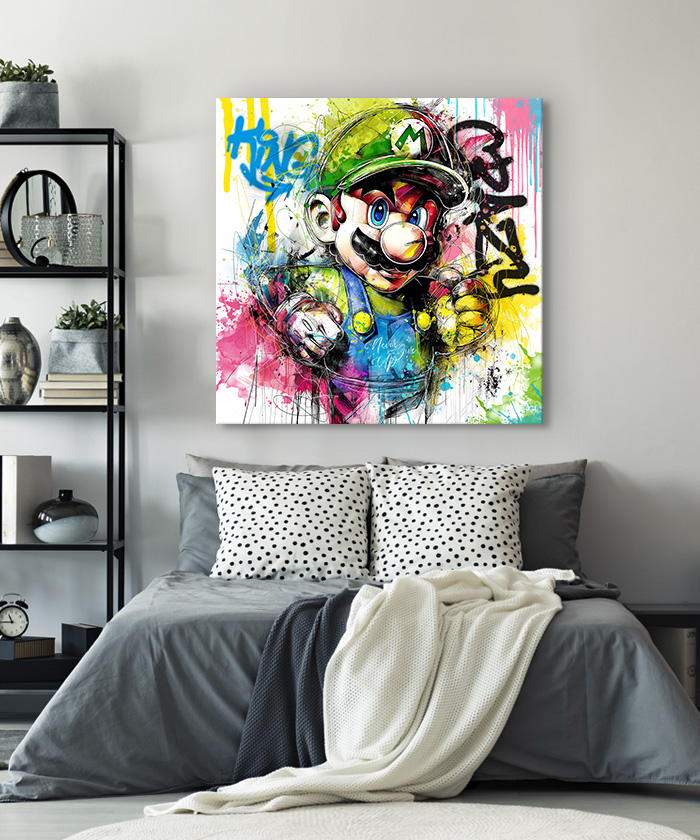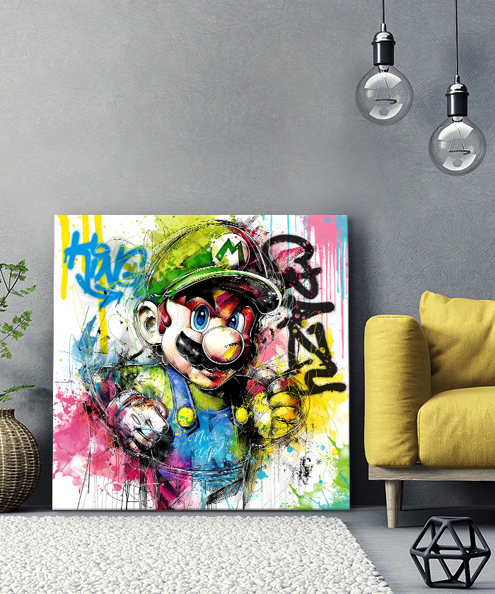 Tableau déco Mario Bros Nintendo pop art aquarelle graffiti