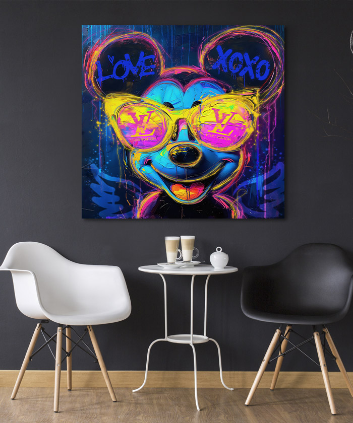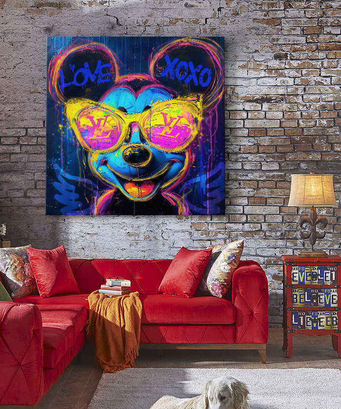 Nous vous présentons le tableau déco Mickey Mouse Pop Art Néon peinture. Si vous aimez l’univers du pop-art, vous devriez aimer ce Tableau déco Mickey Mouse Pop Art Néon peinture autant que nous. En vous proposant ce tableau décoratif, nous souhaitons apporter un zeste d’originalité à votre intérieur. Cette toile propose une touche à la fois pop-art et moderne.