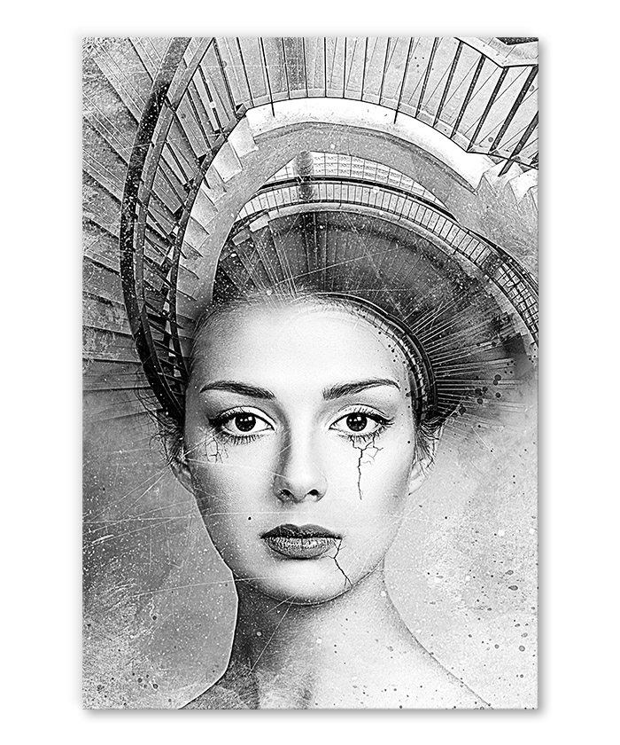 Tableau déco portrait femme escalier – noir et blanc