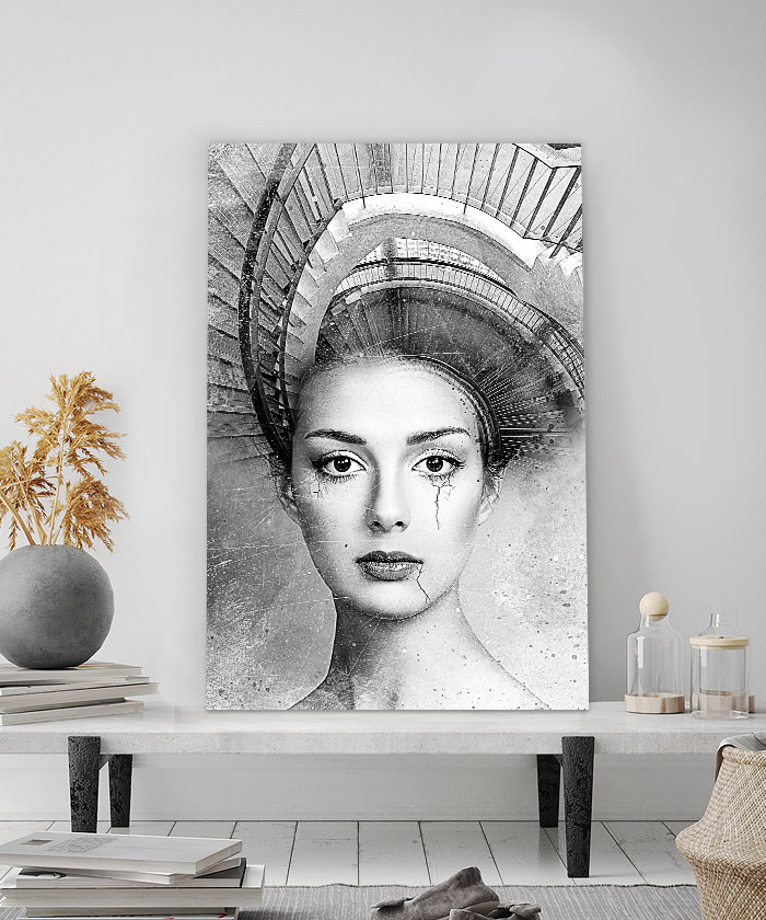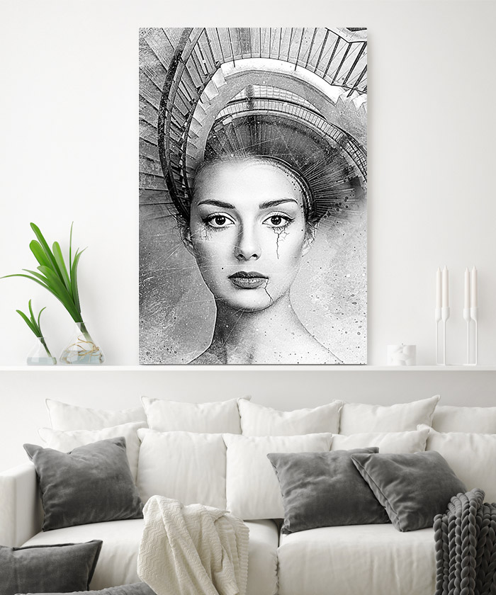 Nous vous présentons le tableau déco portrait femme escalier – noir et blanc. Si vous appréciez l’art moderne, vous devriez aimer ce tableau déco de femme escalier autant que nous. En vous proposant ce tableau décoratif, nous souhaitons apporter un zeste d’originalité à votre intérieur. Cette toile propose une touche à la fois moderne et artistique.