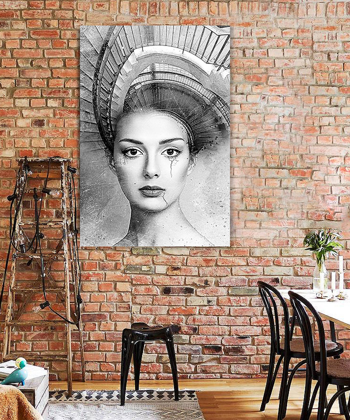 Chez Tableau Déco, nous réalisons tous les visuels de nos tableaux décoratifs. Notre métier, c’est aussi la création artistique. Ainsi, vous ne retrouverez nos tableaux nulle part ailleurs. Nous fabriquons ce tableau déco portrait femme escalier – noir et blanc en France, dans notre atelier de région parisienne.