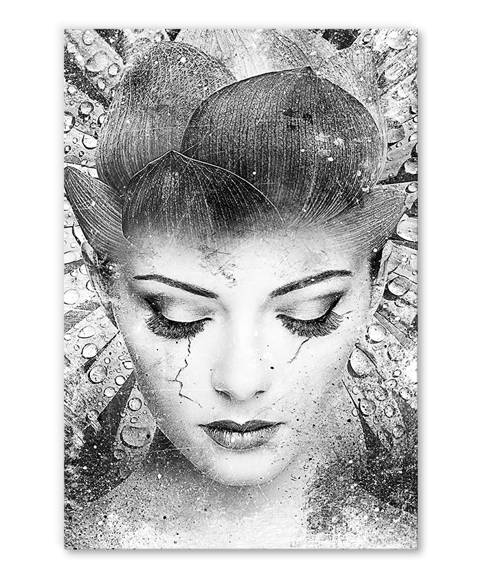 Tableau déco portrait femme fleur de lotus – noir et blanc