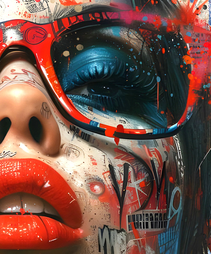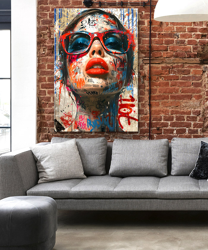 Nous vous présentons le tableau déco portrait femme hot graffiti street art. Si vous aimez l’art urbain, vous devriez aimer ce tableau déco de portrait femme autant que nous. En vous proposant ce tableau décoratif, nous souhaitons apporter un zeste d’originalité à votre intérieur. Cette toile propose une touche à la fois urbaine et moderne.