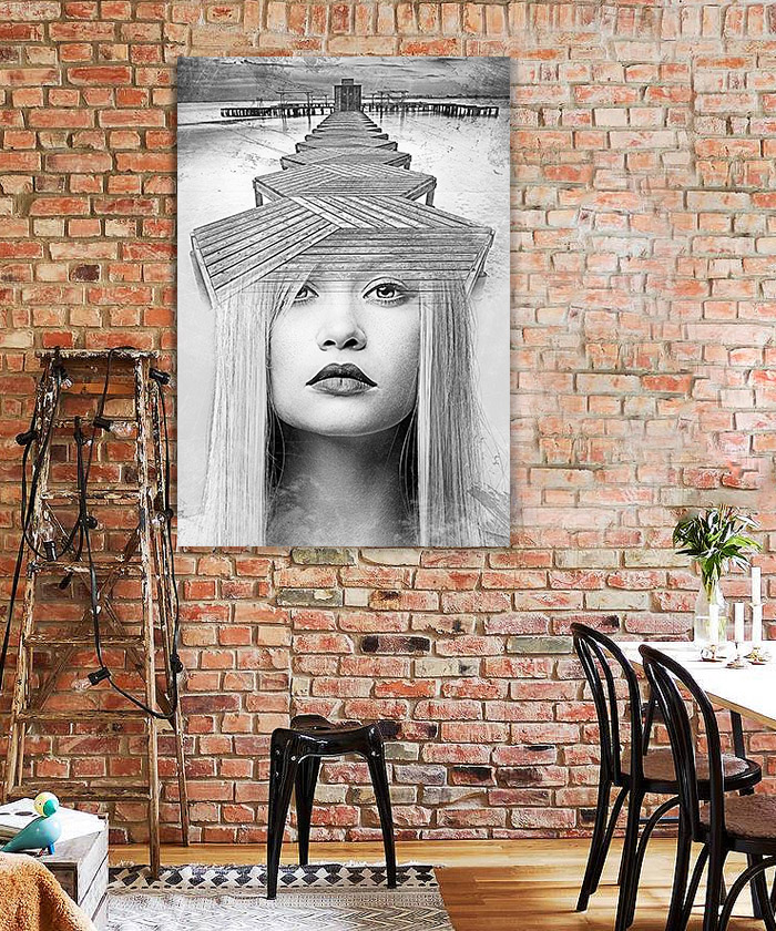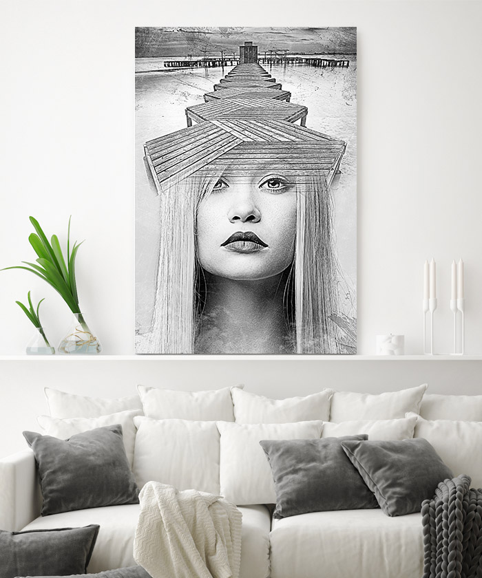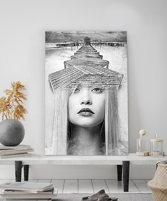 Nous vous présentons le tableau déco portrait femme ponton – noir et blanc. Si vous appréciez l’art moderne, vous devriez aimer ce tableau déco de femme mêlée à un ponton autant que nous. En vous proposant ce tableau décoratif, nous souhaitons apporter un zeste d’originalité à votre intérieur. Cette toile propose une touche à la fois moderne et artistique.