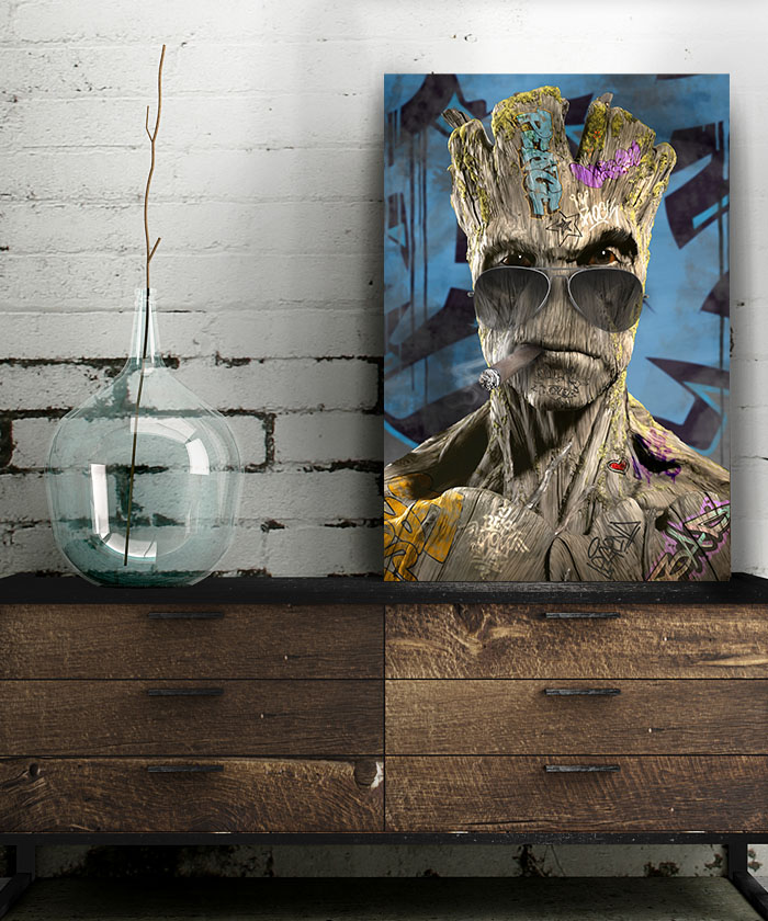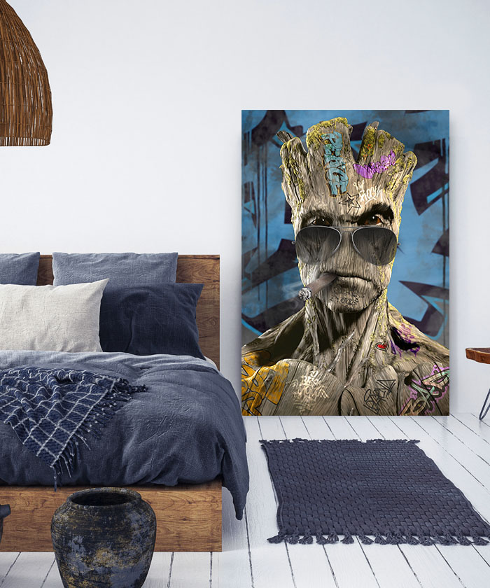Nous vous présentons le tableau déco Portrait Groot des gardiens de la galaxie – Marvel. Si vous aimez ce super-héros, vous devriez aimer ce tableau déco de Groot autant que nous. En vous proposant ce tableau décoratif, nous souhaitons apporter un zeste d’originalité à votre intérieur. Cette toile propose une touche à la fois moderne et urbaine.