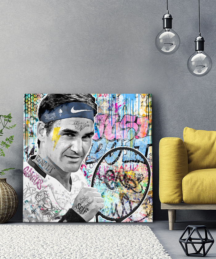 Nous vous présentons le tableau déco Roger Federer Street Art – Fat. Si vous aimez cette célébrité, vous devriez aimer ce tableau déco de Roger Federer autant que nous. En vous proposant ce tableau décoratif, nous souhaitons apporter un zeste d’originalité à votre intérieur. Cette toile propose une touche à la fois street-art et moderne.