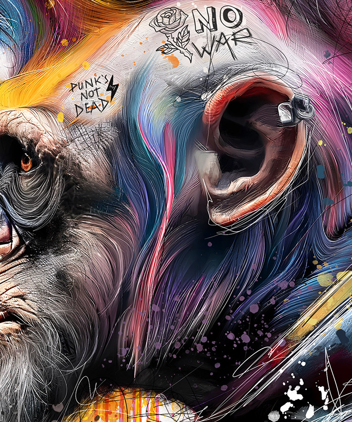Tableau déco Singe punk rock Pop Art Multicolor
