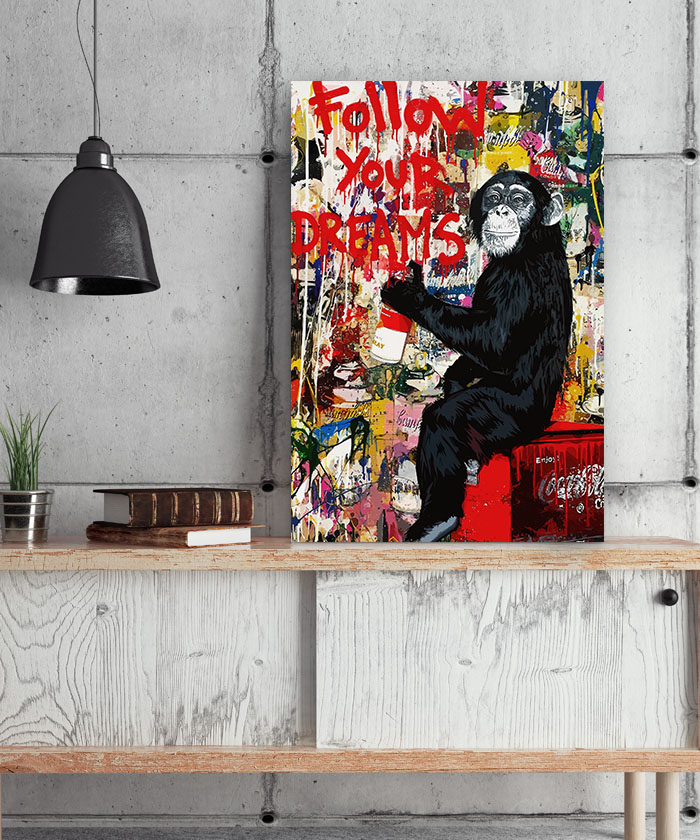 Tableau déco singe street art – Suivre ses rêves