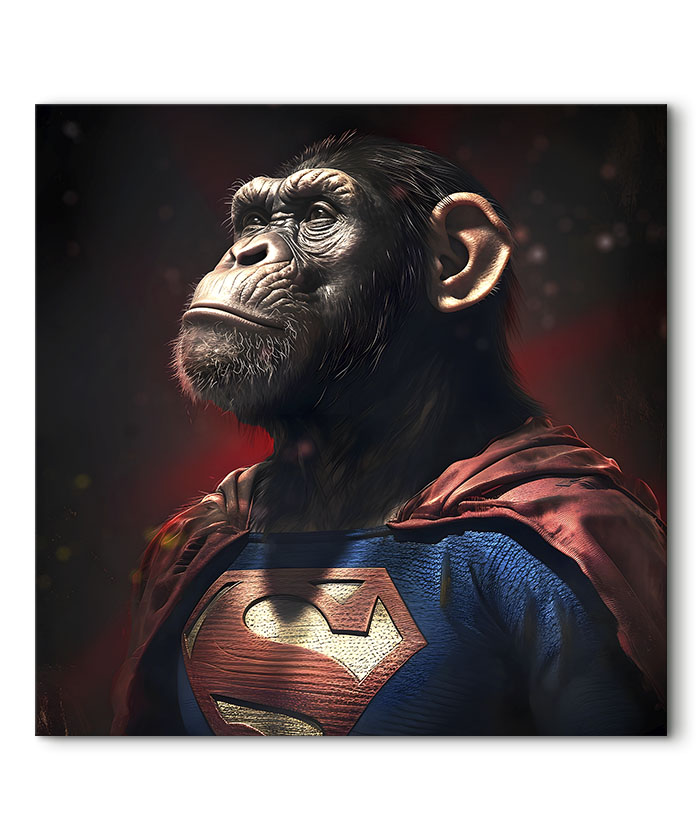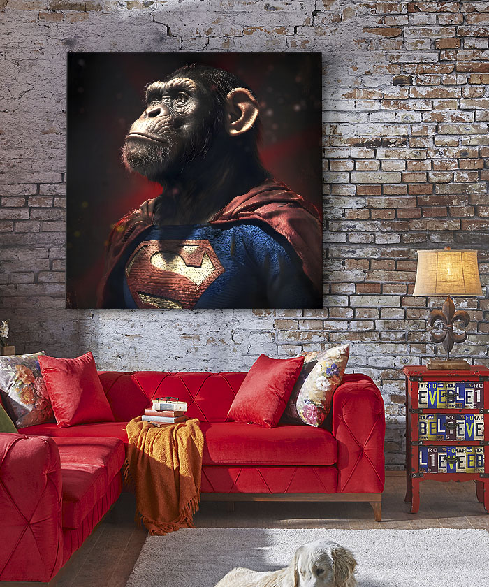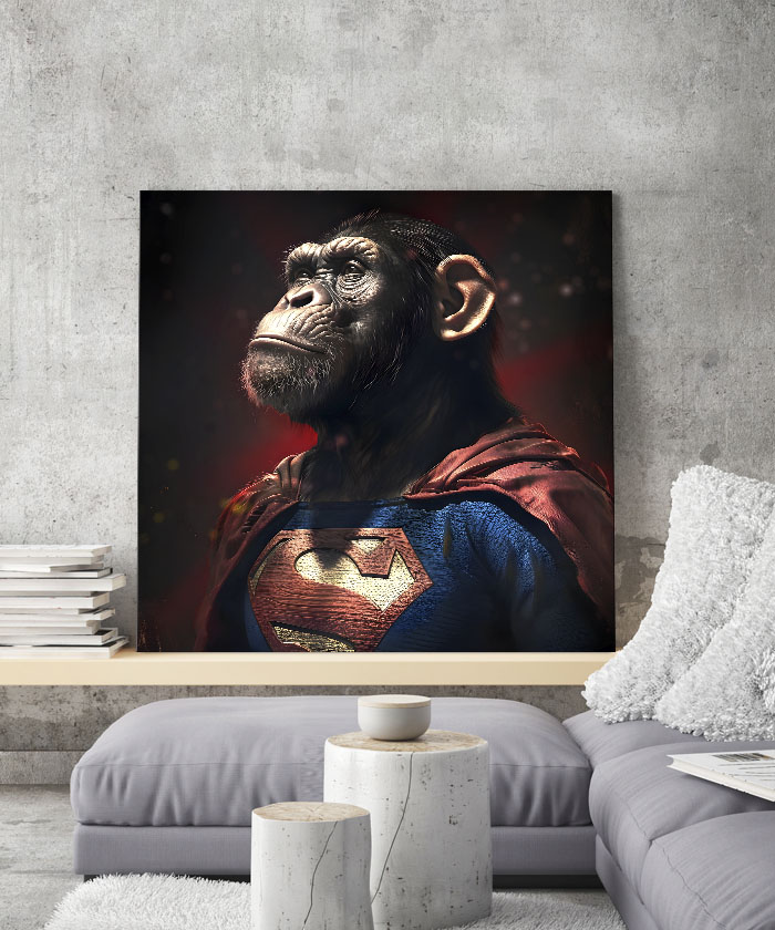 Nous vous présentons le tableau déco Singe Superman. Si vous faites partie de ceux qui sont fans de cet animal, vous devriez aimer ce tableau déco Singe Superman autant que nous. En vous proposant ce tableau décoratif, nous souhaitons apporter un zeste d’originalité à votre intérieur. Cette toile propose une touche à la fois exotique et design.