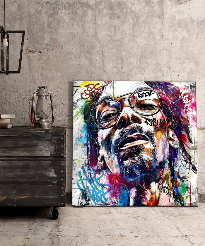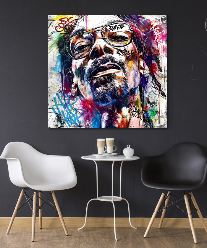 Chez Tableau Déco, nous réalisons tous les visuels de nos tableaux décoratifs. Notre métier, c’est aussi la création artistique. Ainsi, vous ne retrouverez nos tableaux nulle part ailleurs. Nous fabriquons ce tableau déco Snoop Dogg Rappeur aquarelle street art en France, dans notre atelier de région parisienne.