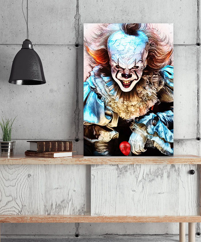 Nous vous présentons le tableau déco Clown Ça – Stephen King. Si vous aimez ce film, vous devriez aimer ce tableau déco du Clown Ça autant que nous. En vous proposant ce tableau décoratif, nous souhaitons apporter un zeste d’originalité à votre intérieur. Cette toile propose une touche à la fois moderne et colorée.
