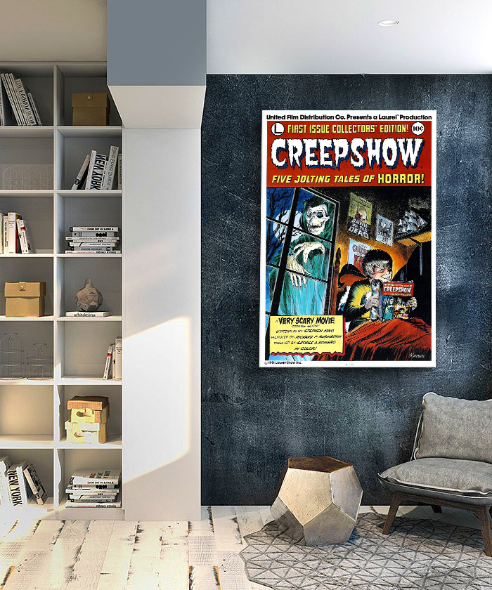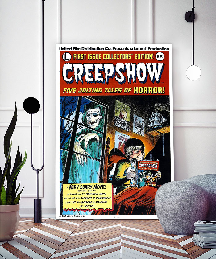 Nous vous présentons le tableau déco Creepshow Horror. Si vous aimez ce film, vous devriez aimer ce tableau déco de Creepshow autant que nous. En vous proposant ce tableau décoratif, nous souhaitons apporter un zeste d’originalité à votre intérieur. Cette toile propose une touche à la fois vintage et colorée.