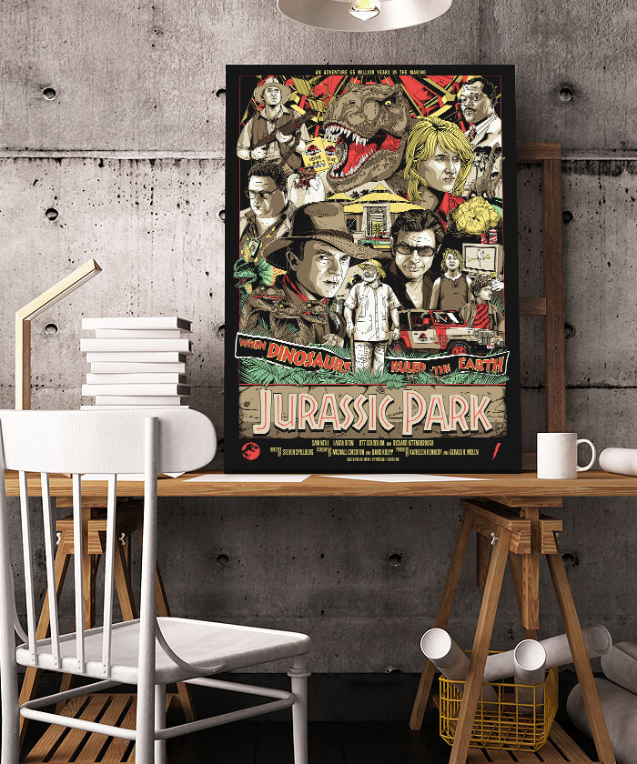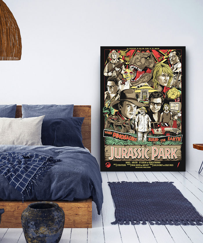 Chez Tableau Déco, nous réalisons tous les visuels de nos tableaux décoratifs. Notre métier, c’est aussi la création artistique. Ainsi, vous ne retrouverez nos tableaux nulle part ailleurs. Nous fabriquons ce tableau déco Jurassic Park Vintage en France, dans notre atelier de région parisienne.