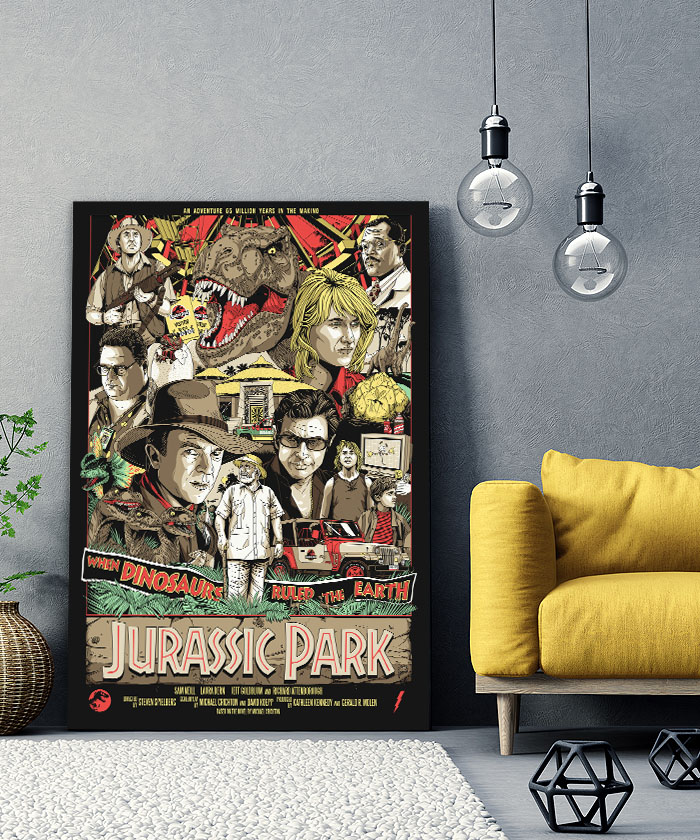 Nous vous présentons le tableau déco Jurassic Park Vintage. Si vous aimez ce film, vous devriez aimer ce tableau déco de Jurassic Park autant que nous. En vous proposant ce tableau décoratif, nous souhaitons apporter un zeste d’originalité à votre intérieur. Cette toile propose une touche à la fois vintage et colorée.