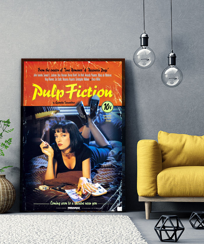 Nous vous présentons le tableau déco Pulp Fiction. Si vous aimez ce film, vous devriez aimer ce tableau déco de Pulp Fiction autant que nous. En vous proposant ce tableau décoratif, nous souhaitons apporter un zeste d’originalité à votre intérieur. Cette toile propose une touche à la fois moderne et vintage.