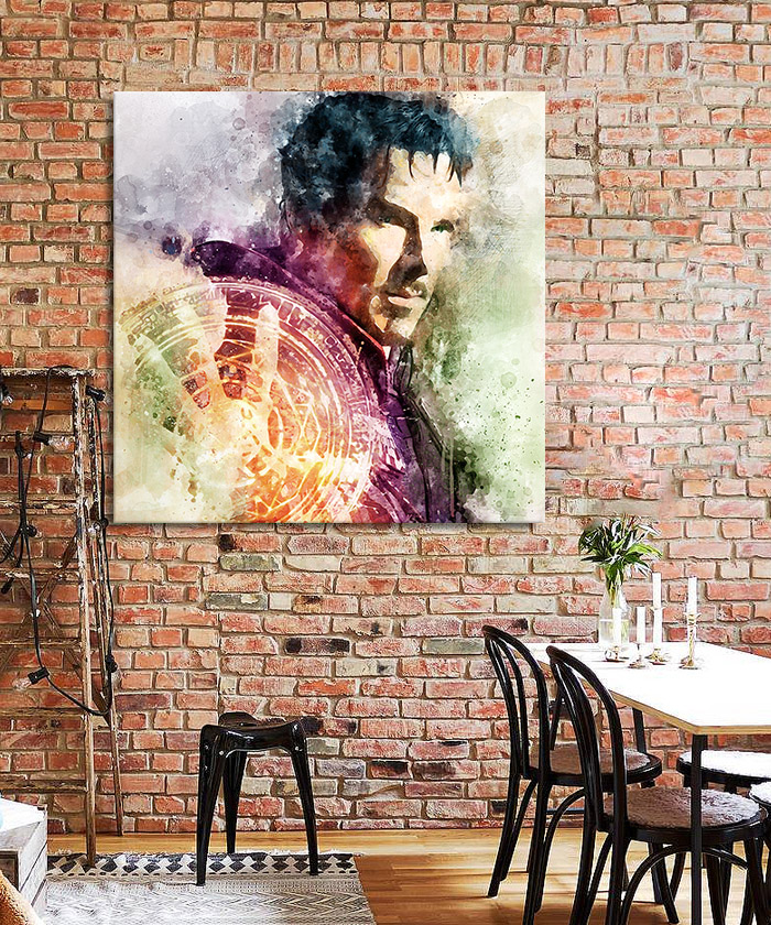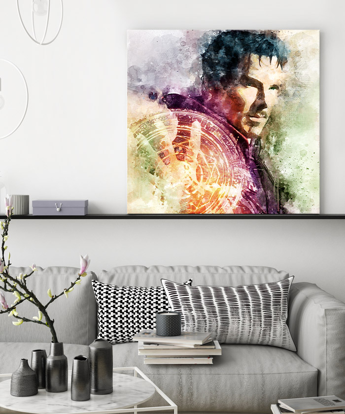 Chez Tableau Déco, nous réalisons tous les visuels de nos tableaux décoratifs. Notre métier, c’est aussi la création artistique. Ainsi, vous ne retrouverez nos tableaux nulle part ailleurs. Nous fabriquons ce tableau déco Doctor Strange Marvel Pop Art en France, dans notre atelier de région parisienne.