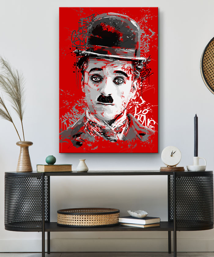 Nous vous présentons le tableau déco Esquisse peinture Charlie Chaplin. Si vous aimez cette célébrité, vous devriez aimer ce tableau déco de Charlie Chaplin autant que nous. En vous proposant ce tableau décoratif, nous souhaitons apporter un zeste d’originalité à votre intérieur. Cette toile propose une touche à la fois colorée et moderne.