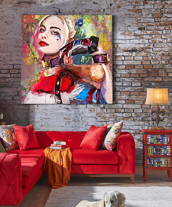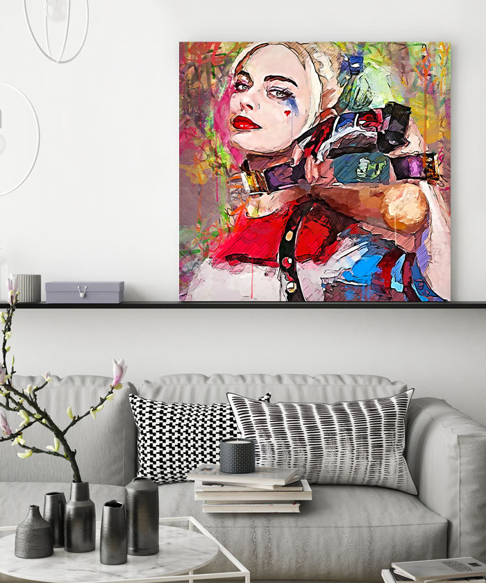 Nous vous présentons le tableau déco Harley Quinn Suicide Squad Street art. Si vous aimez ce super-héros, vous devriez aimer ce tableau déco de Harley Quinn autant que nous. En vous proposant ce tableau décoratif, nous souhaitons apporter un zeste d’originalité à votre intérieur. Cette toile propose une touche à la fois moderne et design.