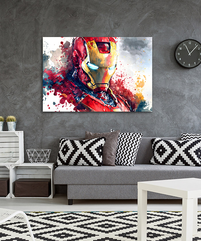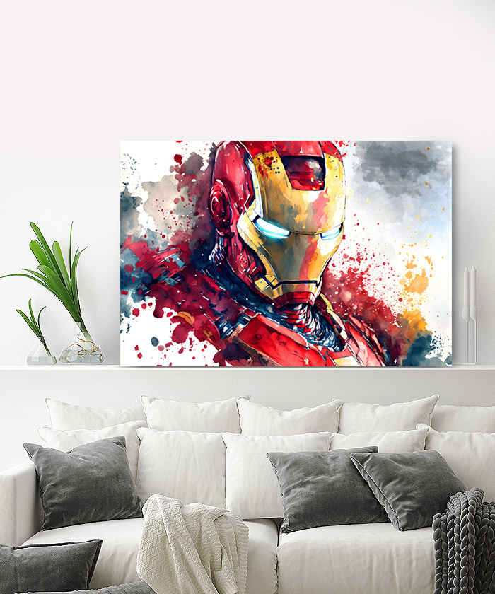Chez Tableau Déco, nous réalisons tous les visuels de nos tableaux décoratifs. Notre métier, c’est aussi la création artistique. Ainsi, vous ne retrouverez nos tableaux nulle part ailleurs. Nous fabriquons ce tableau déco Iron Man Marvel Nuage Aquarelle en France, dans notre atelier de région parisienne.
