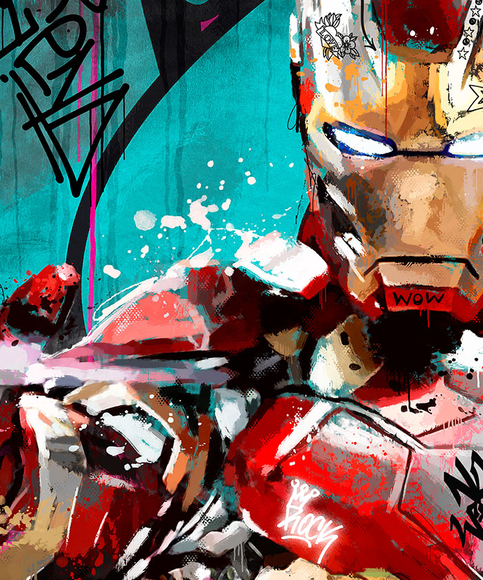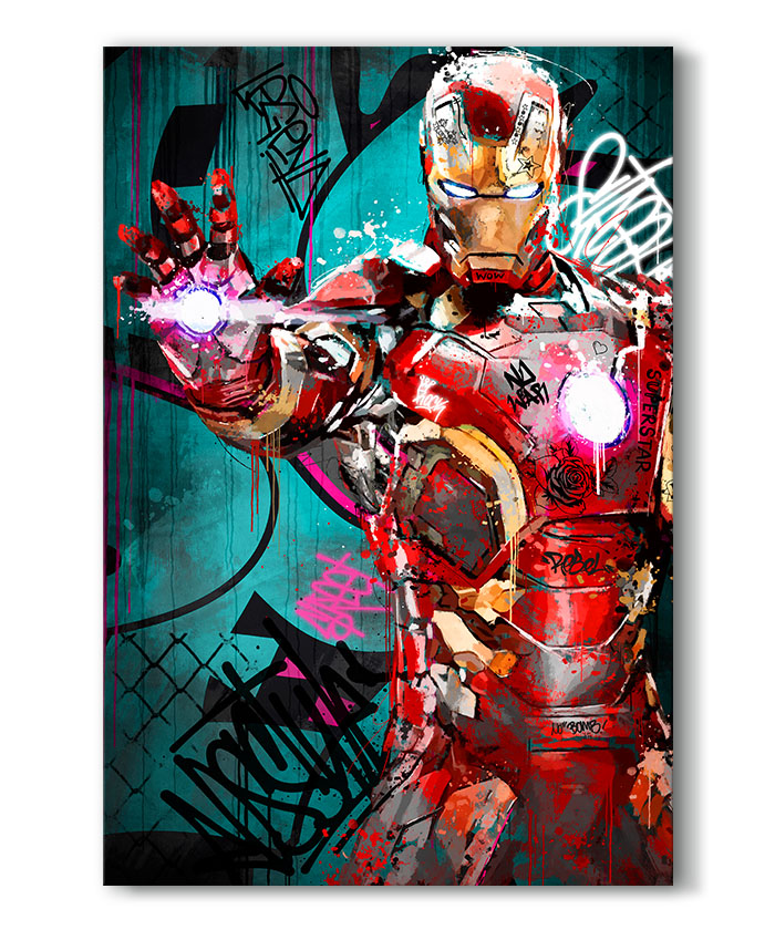 Tableau déco Iron Man Marvel peinture street art graffiti