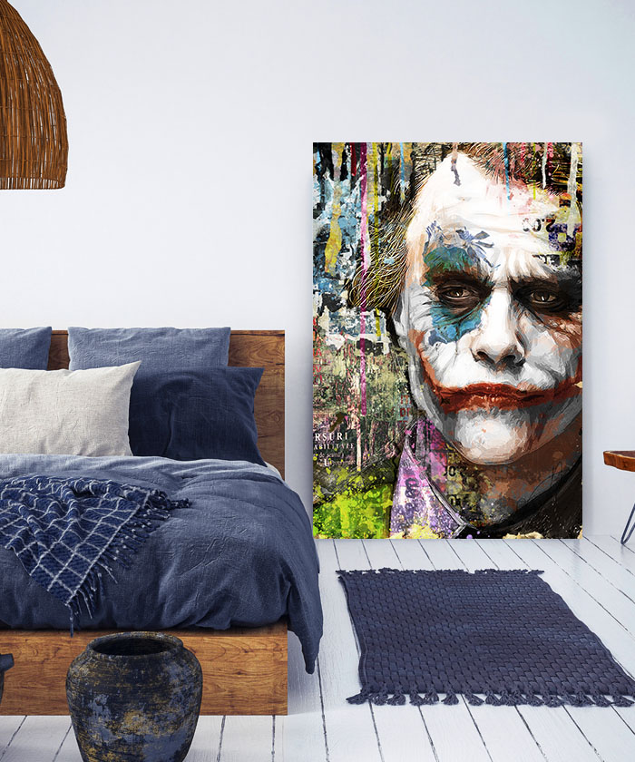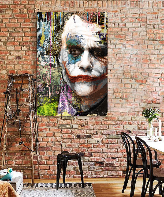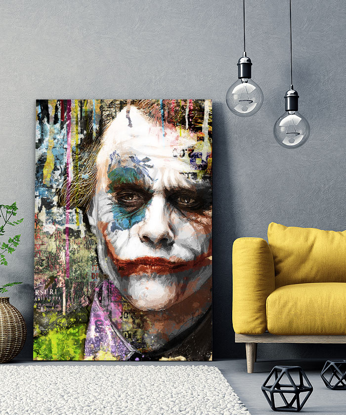 Nous vous présentons le tableau déco Joker street art. Si vous aimez ce super-héros, vous devriez aimer ce tableau déco de Joker autant que nous. En vous proposant ce tableau décoratif, nous souhaitons apporter un zeste d’originalité à votre intérieur. Cette toile propose une touche à la fois moderne et design.